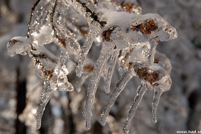 Vikend je bil čudovit, tako za uživanje v naravi, kot tudi za fotografiranje. Svetloba zjutraj je bila popolna in narava je sama poskrbela za vso lepoto. Veje in drevje, ki se je obleklo v ledeno obleko in se sramežljivo nastavljajo sončnim žrkom se ni dalo motiti, ko sem jih poskušal ovekovečiti za vedno.