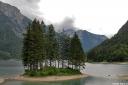 Cesta se je dvigovala in dvigovala in nekje na 1000 metrih nadmorske višine sem zagledal jezero. Rabeljsko jezero polno turistov in pohodnikov, ki so prišli namočiti pregrete ude. Voda je bila ledeno mrzla, vendar je prijala. Par sto metrov višje pa me je pričakala utrdba Rabelj (če se motim, naj me kdo popravi), ki mi je vzela 10 minut, da sem si ogledal podzemne hodnike in vse pofotografiral.
