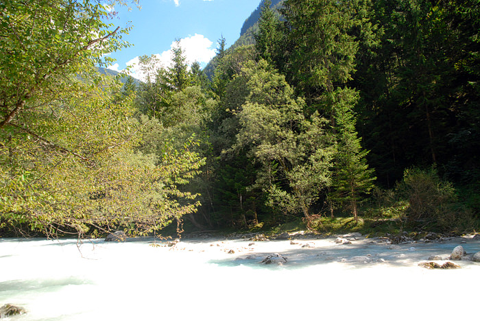 velika korita Soče in par kilometrov pred njimi, ko je eno luštkano parkirišče ob sami vodi :)
