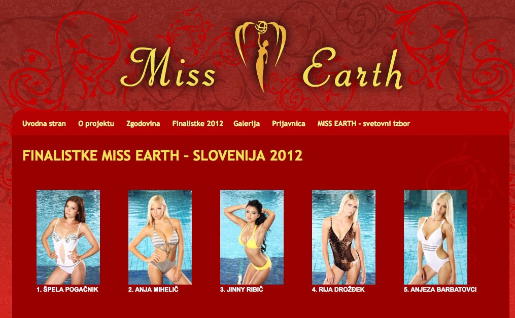 V četrtek, 13. septembra, bo v Vodnem mestu Atlantis potekalo lepotno tekmovanje – izbor Miss Earth Slovenija 2012. Nič posebnega, kajne? Še eno lepotno tekmovanje in še en izbor, ki ga imamo v Sloveniji. Drugo leto se nihče več ne bo spomnil kdo so bile kandidatke in katera je zmagala. Mogoče pa se vseeno kdo spomni prejšnjih zmagovalk – Tanja Trobec, Sara Frančeškin, Maja Jamnik, Ines Draganovič, Rebecca Kim Lekše – jaz se jih ne. Še par stavkov o namenu tega “prestižnega tekmovanja”, preden pridem k sami srčiki problema:
