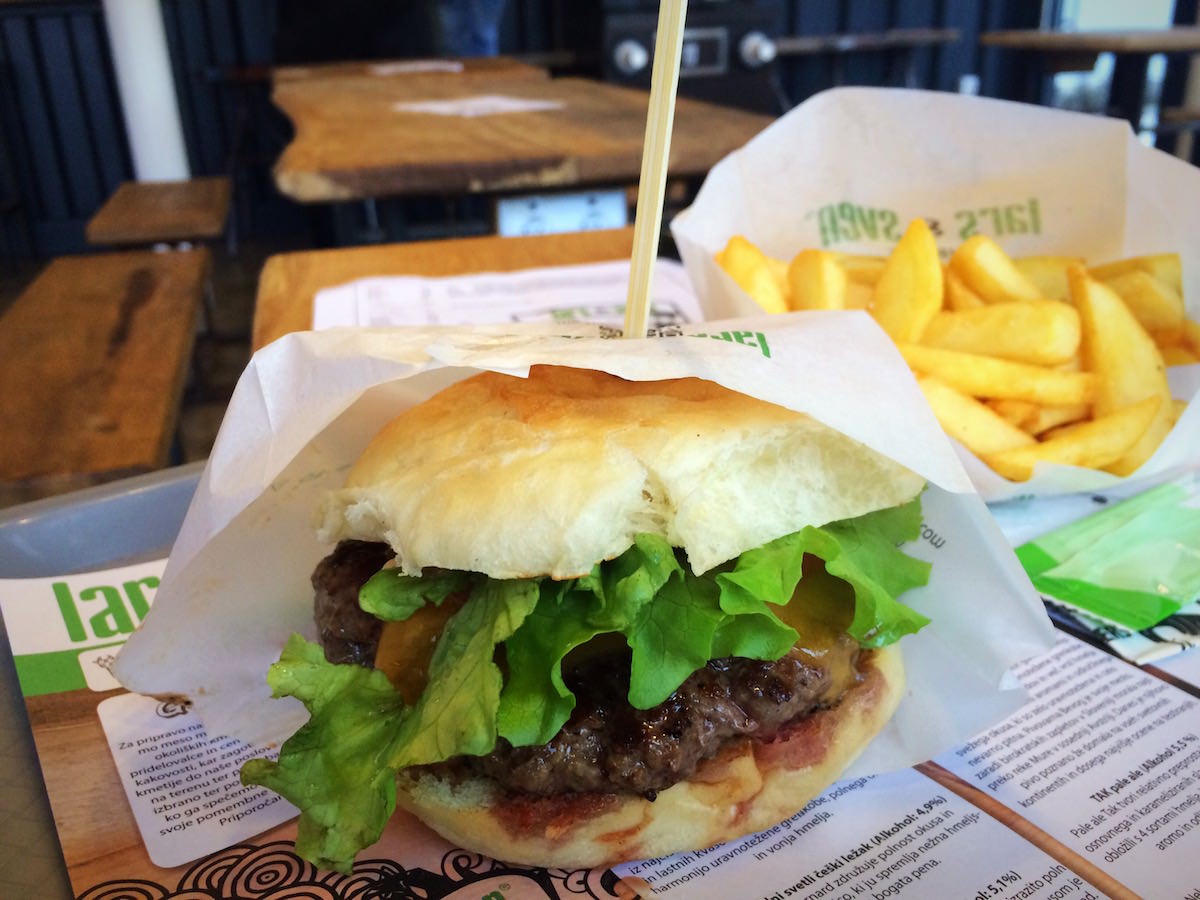 Burger je zanimiv. Po opisih, ki sem jih prebral pred tem sem bil prepričan, da bom razočaran. Slovensko meso je bilo pečeno medium rare, kar je redkost, ko naročam takšno meso. “Bun” je sicer malce sladek, vendar je bil ravno prav pečen in dovolj kompakten, da ni začel razpadati med prsti. Malce več bi lahko dali tudi na njegovo zunanjost, ampak v končni fazi šteje okus! Tudi same priloge v burgerju so bile povsem na mestu.