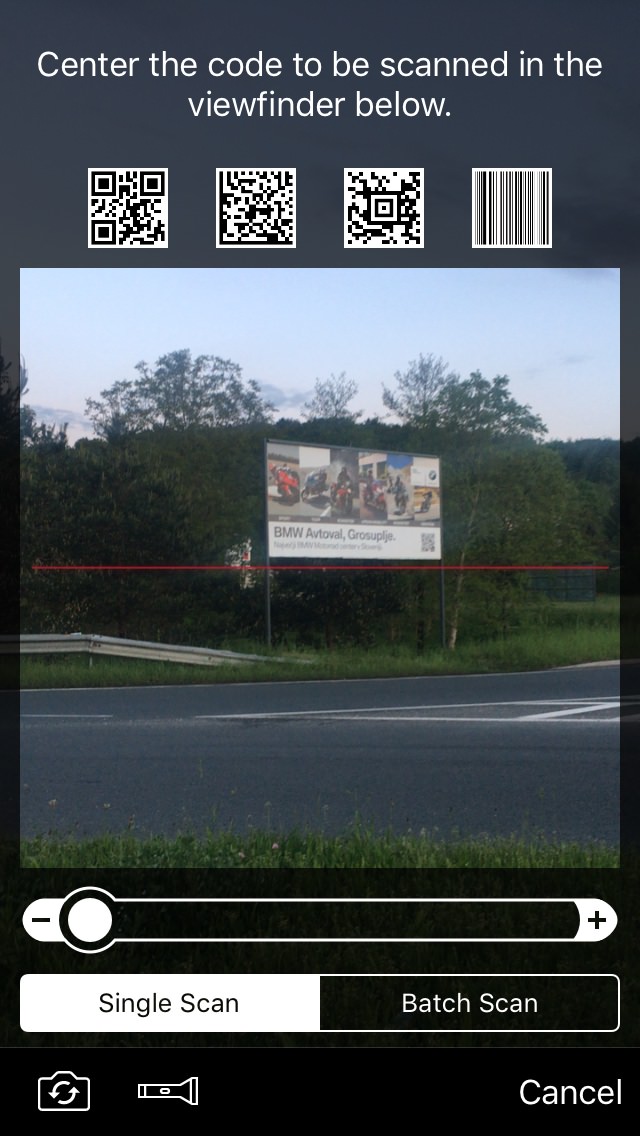 - jebeš vse skupaj – imajo QR kodo – ker sem stal pred semaforjem, sem iz žepa potegnil telefon in naredil fotografijo. Potem odprl aplikacijo za skeniranje QR kode in ugotovil, da jo ne prepozna – QR koda je premajhna in billboard je predaleč. Zaprl aplikacijo in si mislil svoje!