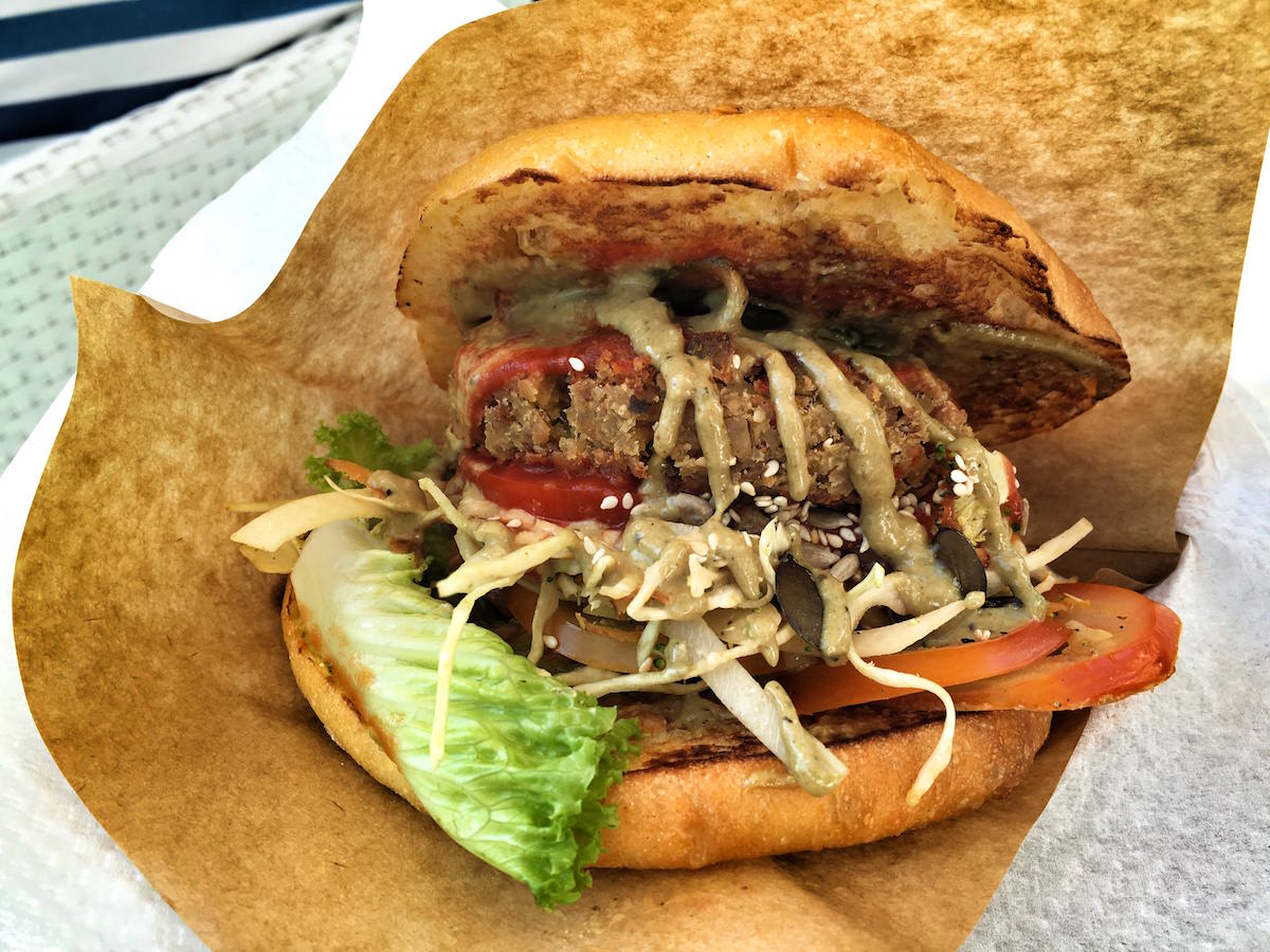 Naročil sem veganski burger Gorenc, ki je sestavljen iz fižola, ovsenih kosmičev, paprike, čilijev, čebule in graha. Sam sem izbral koruzni kruh in izbral vegansko majonezo za omako. Veganski burger Gorenc stane 4,99 eura in je vreden vsakega centa.