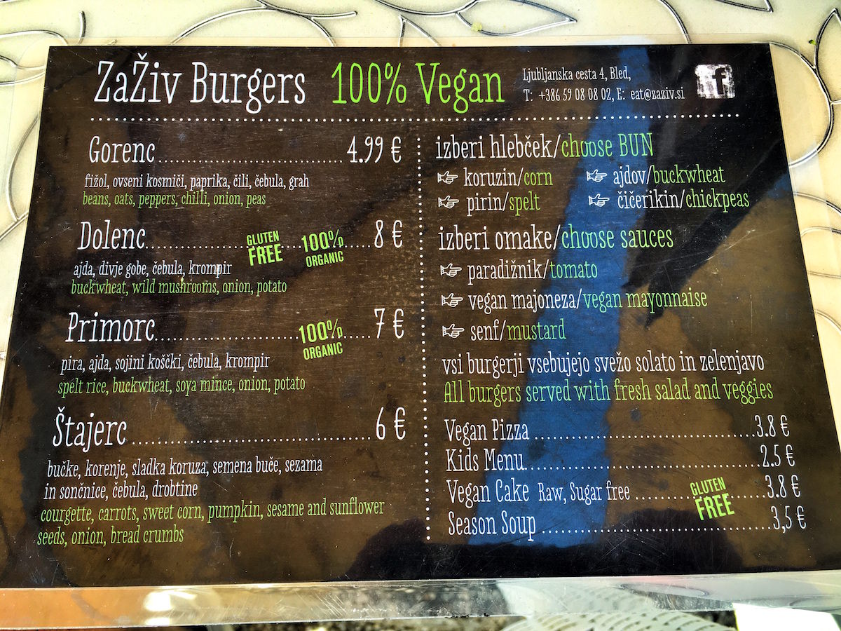 ZaŽiv vegan bar leži na začetku “Gadafijevefa centra” na Bledu. Poleg Mercatorjeve trgovine. Danes je bila precejšnja gužva in sam sem na burger čakal skoraj 40 minut. Vendar sem bil vesel, da sem počakal!