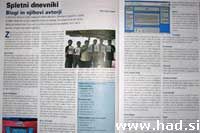 Danes mi v sluzbi pove Cyb3r da je moj blog omenjen v zgoraj omenjeni racunalniski reviji. In sicer v clanku o spletnih dnevnikih. Radovednost ni dala miru in sem moral skociti na Petrol po SWP in takoj preveriti, ce sem res omenjen :) In se najdem med blogerji, kot so jonas, slepocrevo, cookie in mathjazz. In potem se print screen ene strani iz mojega bloga :evil: Saj sem vedel, da bi moral popraviti graficno podobo, pa sem odlasal.