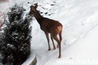 Zakaj vse to? Ker so srne vsakodnevni gost najinega bivsega vrta. Pod snegom iscejo brsticni ohrovt in zelje, ki sta bila nekoc tam. Ker sem dobra dusa in ker rad pomagam, bom srnicam pomagal do konca zime, oz. do konca snega.