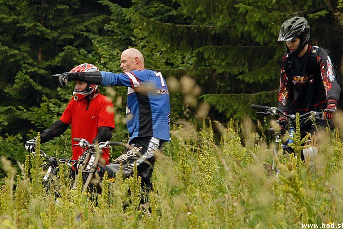 Ze na zacetku proge imas moznost izbire med tremi skoki: velik, srednji in mali. Avto z reduktorjem je odlicno opravljal svojo vlogo in navdusen nad offroad voznjo sem sledil bikerjem. Cudoviti skoki so se nizali en za drugim in izbor fotografij je bil hudicevo tezak. Se vidi, da je Gorazd lastnorocno naredil celo progo. Jump Evil Eye je cudovit, vendar je potrebna dovolj velika hitrost in pa pravilna koordinacija. Park ponuja zabavo za vso druzino, odvisno od tega kaksen adrenalinski odvisnik si. Ce pa se karkoli zgodi s kolesom, pa se vedno najdejo strokovnjaki, ki rade volje pomagajo.