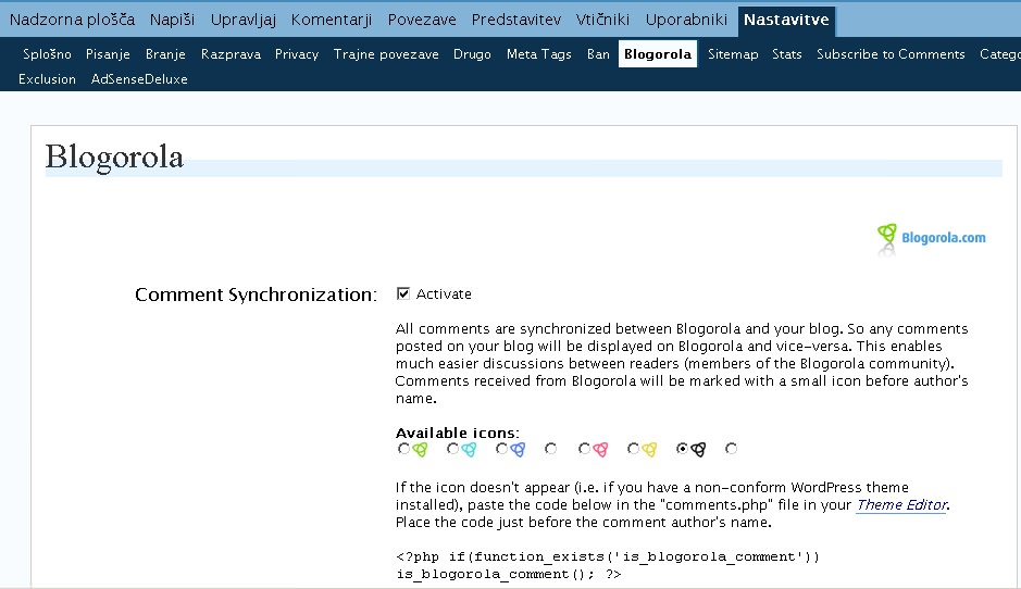 In kaj prinaša Blogorola plugin? Obojestransko komunikacijo, oz. sinhronizacijo komentarjev v smeri Blogorola – blog in tudi obratno. Če komentirate določen zapis na Blogorolini strani se ta komentar prenese na komentirani blog in če komentirate na blogu, se ta komentar prenese na Blogorolo (pod pogojem, da ima blog Blogorolin plugin).