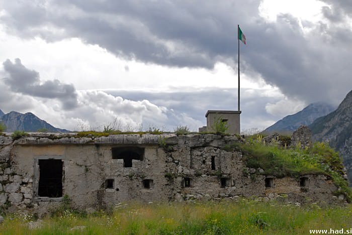 Skok nazaj v avto in pred nama je bil mejni prehod Predel in že sva bila v Sloveniji. Peljala sva se mimo Predelske trdnjave, ki je bila pomembna točka v vojnah z Napoleonom, danes pa je samo še ruševina. In potem se je začel spust proti Logu pod Mangartom. Ozka cesta in krasna pokrajina sta naju spremljali do trdnjave Kluže, ki je bila postavljena na strateški poti med dolino Loške Koritnice in Bovško kotlino. Danes je v trdnjavi Kluže urejen muzej.