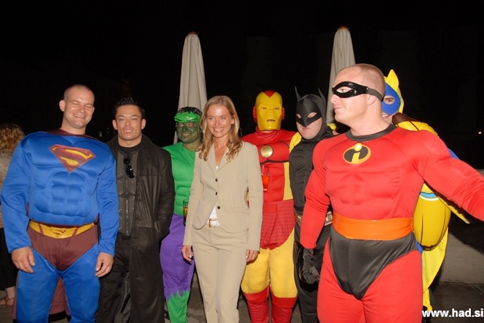 Superman, Batman, Bananaman, itd.. so prileteli v Sloveniji na fantovščino. In ker je bila v Mačku Katarinina Facebook zabava, je fante seveda zanimalo, če je ona “celebrity”. Ko sem jim razložil, da je vodja stranke in da so pred nami volitve, je najbolj pijan super heroj komentiral, da bi zanjo še on šel na volitve. In seveda ni šlo brez fotografij.