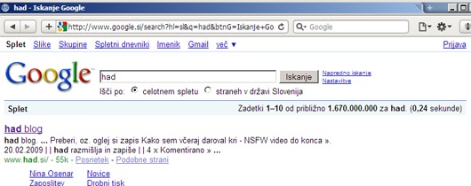 ce hocem o osebah kaj vec podatkov uporabim http://www.google.si ampak dobim cel kup balasta