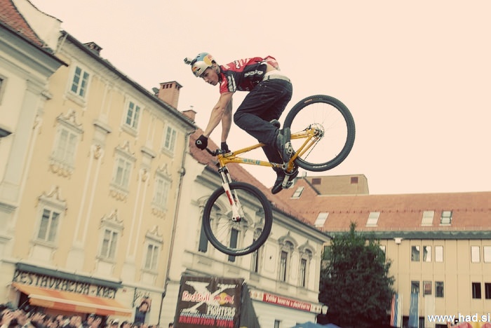 Medtem ko so se fantje na freestyle motocross motorjih na Red Bull X-Fighters Exhibition Touru pripravljali, so vragolije v zraku predstavljali fantje na kolesih.