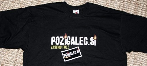 Majica in nalepka pozigalec.si. Brez naslova pošiljatelja in brez česarkoli drugega. Seveda mi radovednost ni dala miru in sem si pogledal “požigalčevo” spletno stran, kjer pa je zaenkrat napis – Samo danes še potrpite. Ob polnoči otvoritev spletne strani pozigalec.si!