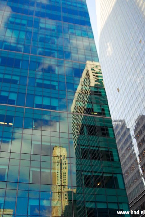 New York – mesto ki nikoli ne spi je polno čudovitih odsevov. Ogromne zgradbe in v njih odsevi malce manjših zgradb in obratno. Ob lepem vremenu vse skupaj izgleda čudovita igra narave. V bistvu pa je vse to ustvaril človek.