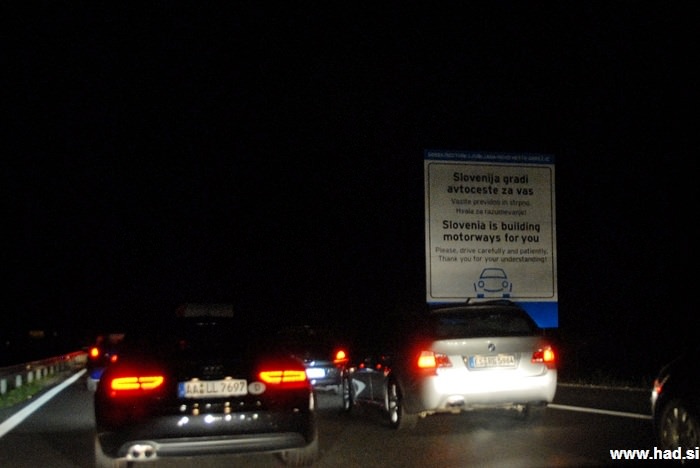 In sva stala. Od konca avtoceste, Pljuska se baje imenuje kraj (vsaj tako so dejali po radiu), do Obrežja sva porabila natanko ŠTIRI ure. Vmes so avtobusi prehitevali kolono po odstavnem pasu, vendar ni bilo nikjer niti enega POLICAJA! Kot da bi bila to prezgodnja ura, okrog 4. ure zjutraj, da bi se oni prikazali in poskusili urediti situacijo. Da ne omenjam da je avtocesta v tem času postala pravi svinjak, kajti tujci so metali vse smeti, kar se jim je znašlo pod rokami, na cesto. Sedaj razumem zakaj se tujci “pizdijo” čez naš vinjetni sistem. Plačajo, da stojijo ŠTIRI ure v koloni?! Tudi jaz bi pizdil na njihovem mestu!