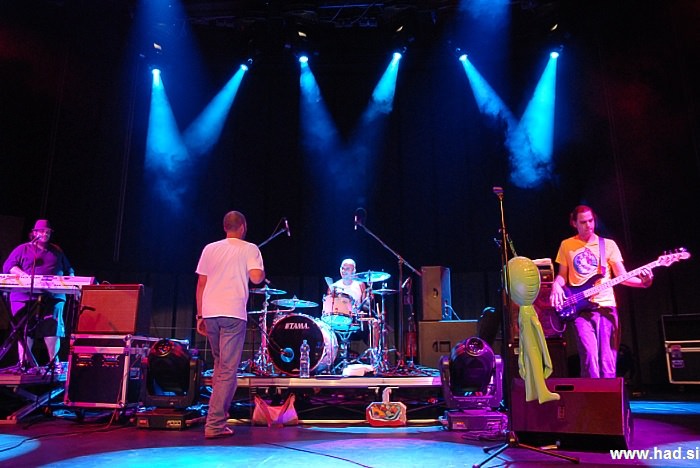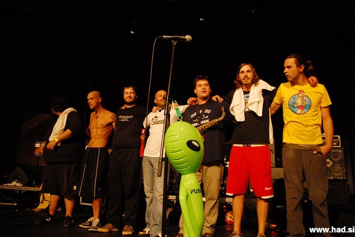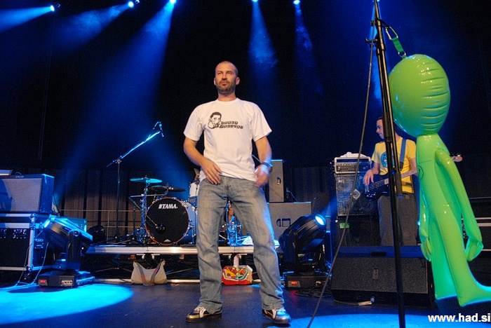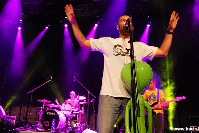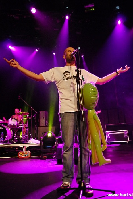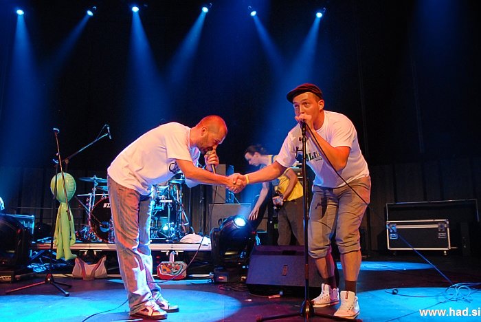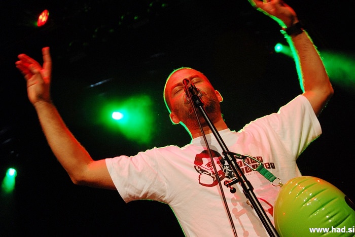 če so že morali pred koncertom kaj sukat na platnu, bi bilo veliko boljše gledat fuzbal – ker ga pač doma nismo, misleč, da bo ali zagrooval že za časa tekme … pa ni, jebat ga … sound v kinu je res čuden, tak stisnjen, plehek in prepotihen, predvsem bas se je slišalo zelo slabo … band je odpšilal korekten službeni tezgaški nastop, v pozitivo je izstopal car ratej na bobnih … ali je bil super, v nastop je vložil veliko energije, firma dela je bil absolutni highlight, uni palčki-glasovi pri zadeti ljubljani takisto … brca v temo je po mojem kao reggae aranžma utripa mladosti, ker je z njim komad popolnoma izgubil grozeč in temačen karakter, ki ga ima na plati in ki takemu besedilu tudi pritiče … kaos z gosti je bil čisto simpatičen (za tiste, ki ne veste, zakaj je bil zraven zlatko: zlatko je na svoji plati svet je lepši objavil komad dragi dalaj, ki je napisan v obliki pisma aliju v indijo … poslušaj tukaj: http://www.youtube.com/watch?v=hcApfe9jXKE … meni je bilo na koncertu čisto fino, itak nisem pričakoval neke tehnične popolnosti, ampak to, kar sem dobil: veliko reminiscence, čustev in prijetnih spominov – jebiga, ipak gre pri vsem skupaj na nek način za obletnico valete/mature … ker nisem dvignil roke in sem torej alija že videl na obeh njegovih omembe vrednih koncertih (v takratni dakoti in kot ogrevalca za beastie boys v hali tivoli) lahko sodim, da tale koncert ni bil nič slabši od onih dveh … v nekaterih pogledih – alijeva kondicija in karizma – celo boljši …