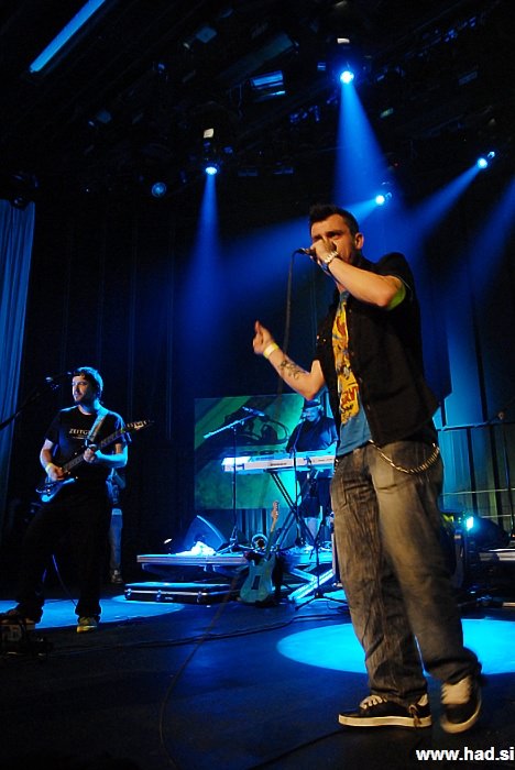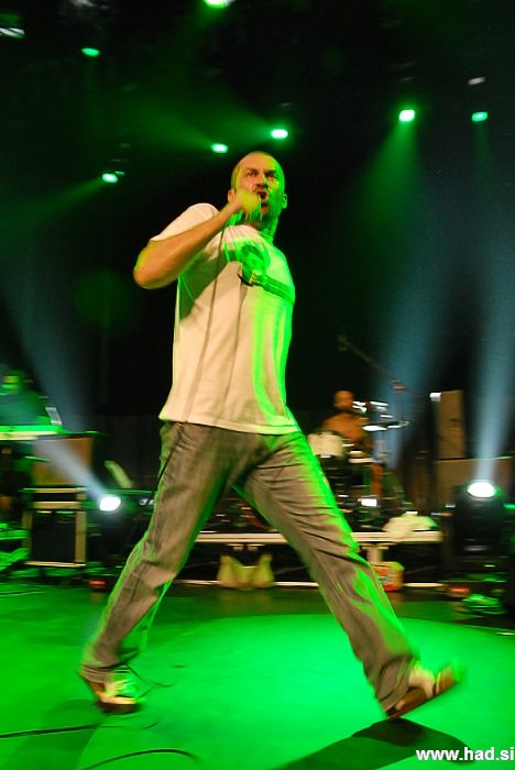 Ob 21:00 so se odprla vrata v dvorano, vendar ne zaradi koncerta. Začeli so projekcijo snowboard filma, ki se je v naslednji uri ponovil 3-krat! Seveda organizator si ni vzel minute časa, da bi sporočil kdaj bo koncert, oz. zakaj ga ni ob napovedani uri. Totalno neprofesionalen odnos in totalno podcenjevanje publike. Par minut pred deseto uro sem se šel zdret na organizatorja zaradi popolnoma neprofesionalnega odnosa in zahteval povrnitev denarja. V tistem se je za isto potezo odločilo še precej ostalih obiskovalcev, ki so z mlajšimi otroci čakali na veliko vrnitev Ali Ena! In ko sem se prebijal v dvorano, da bi vzel torbo s fotoaparatom, se je začelo nekaj premikati na odru. Ljudje so se vsuli v dvorano in nisem prišel iz nje.