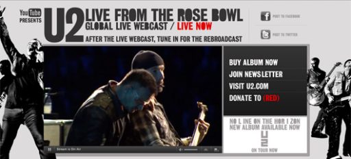 Global Live webcast – U2 live from the Rose Bowl poteka zdajle v živo preko YouTuba, oz. U2ube. Za tiste, ki nismo bili v Zagrebu na koncertu U2, je tole odlična rešitev.