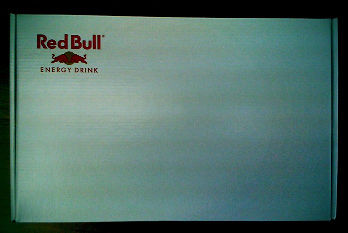 In pred parimi minutami me pokliče ponovno, ker je “tukaj”. Dve prijetni deklici v Red Bull avtu mi podata škatlo! Hmm. Je to bomba? Antraks? In že ju več ni bilo!
