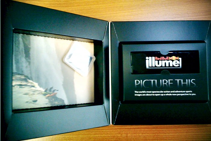 Ko pridem v pisarno, fotkam “unboxing” in sem presenečen. Dve “piksni” in še ena škatla. V njej pa čitalec kartic in pa 4G SanDisk kartica. Ko vtaknem kartico v čitalec, se začne rolati predstavitveni film Red Bull Illume. In kaj je Red Bull Illume Image Quest 2010?
