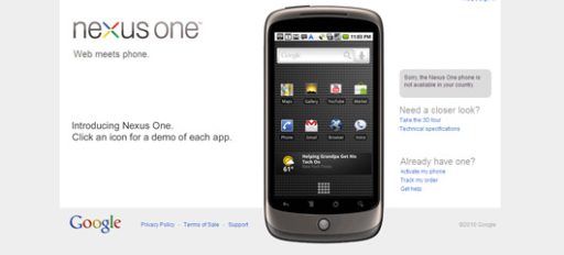Google Nexus One, nov Google telefon, je plod sodelovanja Googla in HTC-ja. Cena telefona v Google spletni trgovini je 529$ in seveda – Sorry, the Nexus One phone is not available in your country, z naročnino pri T-Mobile v Ameriki pa je njegova cena 179$.