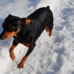 Kužek Čar, pasma pinč, živa teža 3.5kg, je hišni ljubljenček – dobesedno. In ko gre na sneg ima rahle probleme, saj ni tako “peresno lahek, da bi lahko hodil po njem in njegove tanke tačke niso tako dolge, da bi lahko kljubovale 20cm in več snega.