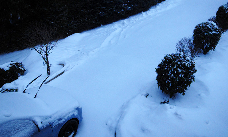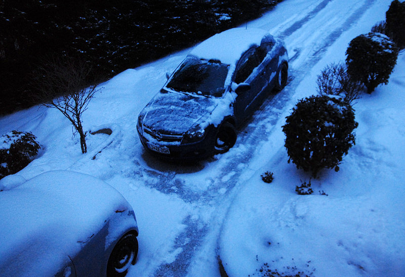 In če sem včeraj zaradi snega ostal doma, se bom danes lahko prebil do Ljubljane – na zadnji fotografiji manjka en avto! Ampak vse to ni nič proti jutru 11.2.2009, ko je bilo vse skupaj res idilično.