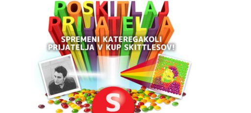 FB aplikacija je čist luštkana, saj vam iz vaše fotografije naredi Skittle slikco v petih Skittle barvah (vijolična, rumena, oranžna, rdeča, zelena) in iz bonbončkov. Zraven obstaja še spletno mesto www.skittles.si – Domov (če ustvarjalci te strani berete tole, spremenite vsaj title!!). Ampak vseeno ne bom postal fan Poskitlaj se, ker še nisem niti poskustil Skittles bonbonov!
