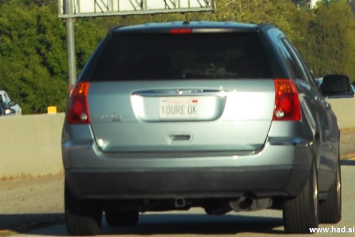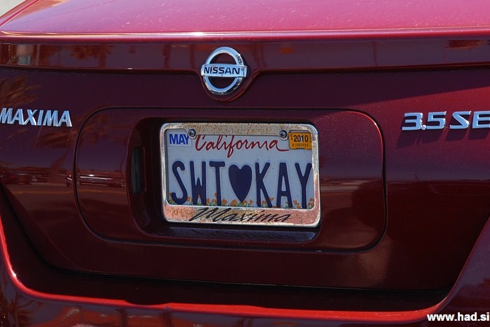 Fasciniran sem nad njimi. In ne morem mimo tega, da ne bi objavil še cel kup registrskih tabli – custom USA license plates, ki sem jih srečal med vožno, ali na parkirišču. Nekatere so odlične, škoda ker pri nas ni takšnih primerkov!