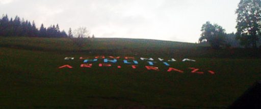 Kdor se je zadnji dni peljal čez Trojane (po avtocesti, ali po stari cesti), je verjetno opazil “džinovski” napis Slovenija proti arbitraži.