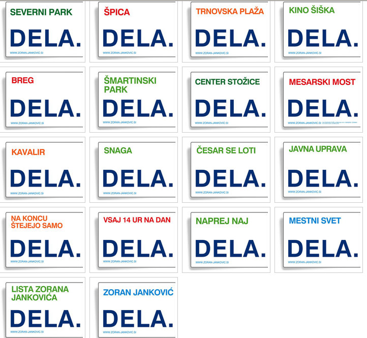 Zoran Jankovič, sedanji župan in na volitvah kandidat za župana Ljubljane, ima izredno zanimiv slogan predvolilne kampanije – DELA (čestitke strategu, kdorkoli že je to).