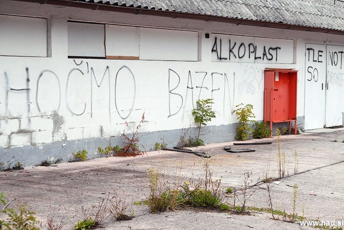 Najboljši od vsega je grafit na steni propadajočega objekta – HOČ’MO BAZEN! Za razumevanje vsega, se je treba vrniti malce v preteklost.