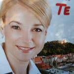Največji mimosunek sem opazil včeraj pri kandidatki NSi za županjo Ljubljane Mojci Kucler Dolinar, ki je vzela za svoj slogan besedo Volim in zraven je nekdo prijazno dopisal Te.