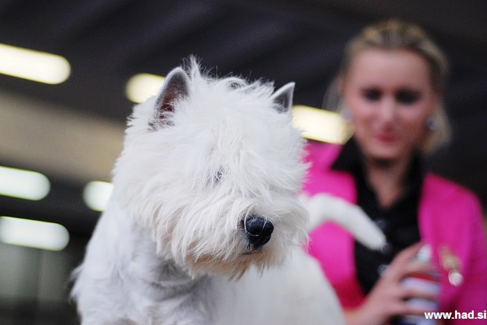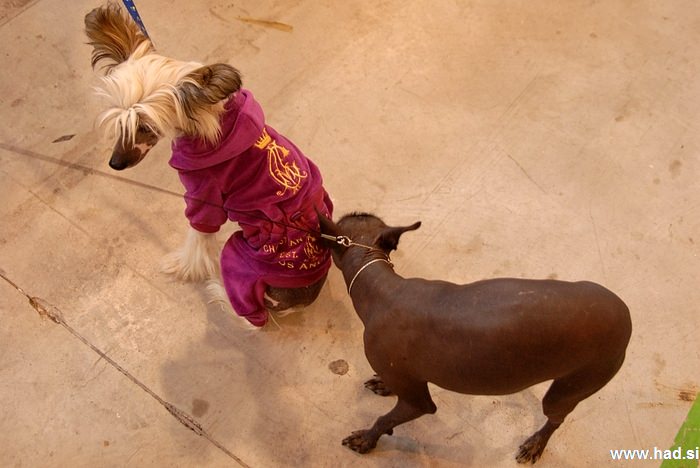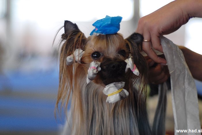 3. Had, zelo realen zapis, ker je kultura razstavljalcev res tema, o kateri bi se dalo marsikaj zapisati … Je pa tudi druga plat razstav, ki se skriva za “viklerji” in pasjimi parfumi (kar se tudi meni zdi tzelo pretirano). Gre za stičišče kinoloških strokovnjakov, razstavljalcev, sodnikov. Četudi morda ni bilo na programu za širšo javnost, so se v času razstave srečali minister Židan in pobudniki civilne zaščite glede novega zakona proti mučenju živali, potekale so strokovne razprave, ki imajo velik vpliv na razvoj kinologije nasploh. Razstavna dejavnost je namreč vodilna kinološka dejavnost – zaradi mednarodne razvitosti in velikega števila udeležencev predstavlja gonilno silo vzreje in s tem tudi daje podlago za druge kinološke dejavnosti. Če povem po domače, sodniške ocene vplivajo na razvoj pasem v smeri, ki so podlaga za zdrav razvoj pasme. Tako se na primer s pomočjo srečevanja stroke in razstav selekcijonira pasme in omejuje poteze človeka (npr. kupiranje ušes in repov), ki niso prispevale k dobrobiti psov, zato kinologija opozarja tudi, naj bo pasemska selekcija usmerjena v zdravje telesa in duha tudi pri psih. … Skratka, lahko gledamo širše na zadevo in poanta šova je zagotovo v prid kosmatincem. Je pa res, da so razstave žal prerasle tudi v boj za ponos lastnikov, ki se nato jezijo nad svojimi kužati, ki niso prav nič krivi, da jim sodnik ni pripisal najboljše ocene. Kot vedno, je v ozadju več interesov. Jaz vseeno skušam verjeti v tiste dobronamerne.