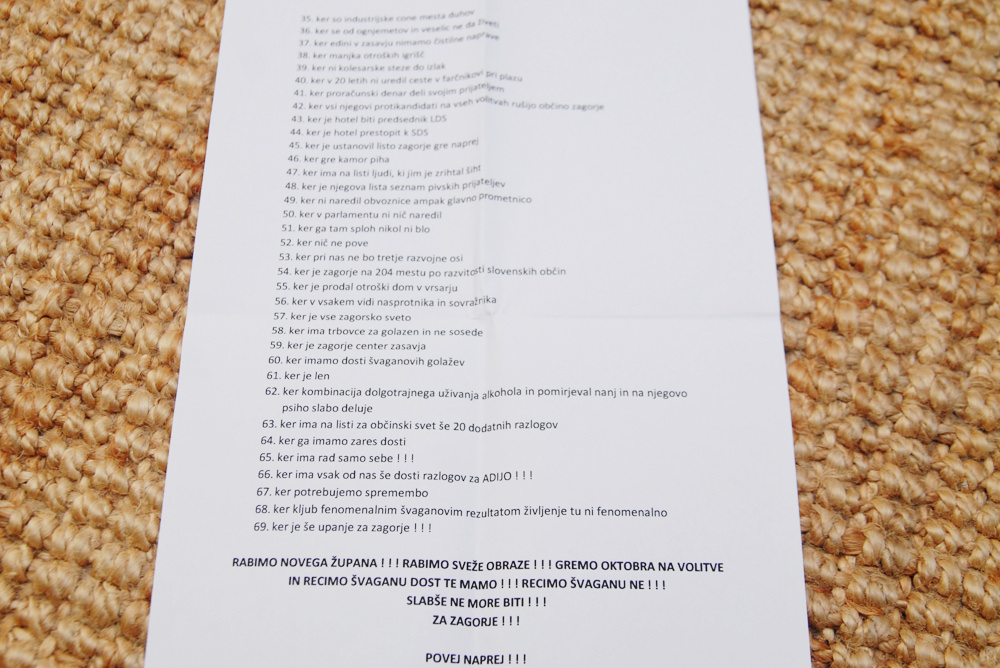 Kdorkoli mi je poslal “navadno” pošto na domač naslov, je vedel zakaj mi pošilja. In verjetno se je tudi zavedal, da bom objavil ta primer negativne volilne propagande, ki se skriva pod imenom Zagorje gre v kurac in sodi v predvolilni golaž, ki se dogaja te dni po širni Sloveniji in nas prijazni “ljudje”, ki se na nas spomnijo vsake štiri leta, spet zasipajo s svojimi nebulozami in #darili.