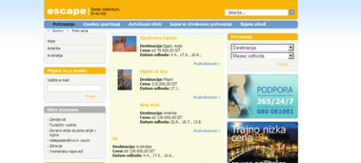 Ups. Kot me je Jaka opozoril v komentarju, je tole zgoraj stara spletna stran – pred tem sem “ornk” guglal, da bi našel karkoli bolj relevantnega, pa vendar mi ni uspelo. In tole spodaj je nova stran turistične agencije Escape – mogoče pa se je zaradi tega tako povečal promet?? Ampak SEO jim pa ni ravno najboljše uspel, saj jih ni na prvih parih straneh Googla!! Potovanja v ekzotične kraje?? Kje pa je to :) ekzotika?