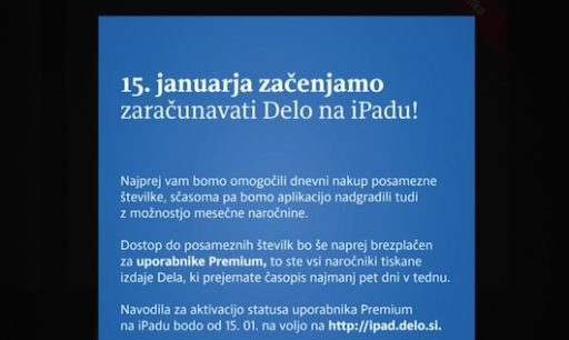 No, sedaj Delo spreminja tudi to. Namreč vsebina v iPad ediciji ne bo več zastonj, ampak bo mogoč nakup posameznih številk Dela, kasneje pa bodo omogočili tudi mesečno naročnino. Za naročnike tiskanega Dela, ki prejemate Delo 5x tedensko, pa bo ta dostop zastonj.