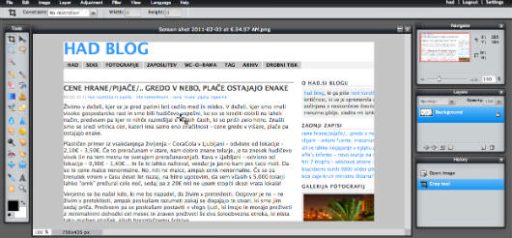 Pixlr omogoča cel kup različnih funkcij, ki na las spominjajo na photoshop, layerji, cel kup filtrov, različne nastavitve, predvsem pa orodja ki so enaka kot v photoshopu. Omogoča tudi copy/paste. Da ne pozabim – izberete lahko tudi slovenski jezik! Če se registrirate, lahko shranjujete fotografije na sam servis pixlr. Definitivno priporočam!