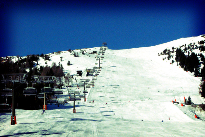 Temperature na smučišču so bile vse prej kot zimske – na 2200 metrih je bilo dopoldan 8 stopinj, nižje pa tudi 12, kar se je seveda poznalo tudi pri samem snegu, ki se je preko poldneva že začel mehčati in je spreminjal svojo “stanje”. Vendar je bila kljub temu smuka odlična in predvsem sem se do 13:30 “ornk” nasmučal. Naredila sva 30 km, kar se mi zdi precej – glede na to, da smučarske proge niso ekstremno dolge in da je smučišče drugačno kot je v Nassfeldu, kjer sem naredil 50 km v enem dnevu.