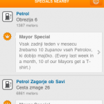 Od včeraj naprej to ne drži več, saj je Petrol, kot prva “resna” družba, začel ponujati “special offer nearby” na vseh svojih bencinskih servisih, ki so dodani v Foursquare (nisem šel preverjati, če so manjkajoče dodali sami, ali so dodali special samo na obstoječe). In kaj ponujajo za nagrado vsem tistim, ki se bomo “check-inali” na servisih?