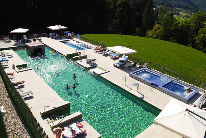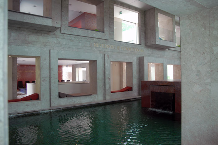 Bazen ima toplo vodo – 31 stopinj, ki je zdravilna (itak). Tudi notranji bazen je velik in komaj čakam, da si grem vse skupaj ogledati ponoči.