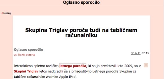 Sicer RichPaper Mobile omogoča tudi vsebine za naprave brez Flasha (iPhone, iPad), vendar jaz takšnega poročila pri Zavarovalnici Triglav nisem našel! Mogoče se motim in ne znam brskati?
