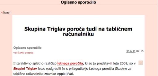 Interaktivno spletno različico letnega poročila, ki so jo predstavili leta 2009, so v Skupini Triglav letos nadgradili še s prilagoditvijo Letnega poročila Skupine za tablične računalnike znamke Apple iPad.