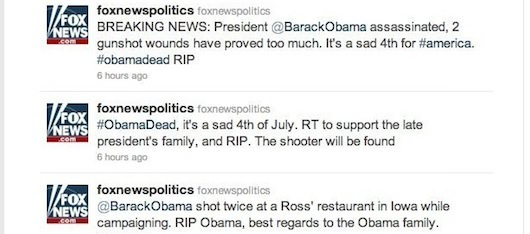- Fox News Twitter claims Obama is dead, organization victim of new hacker group