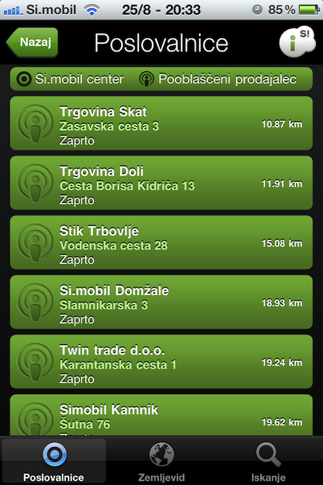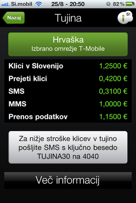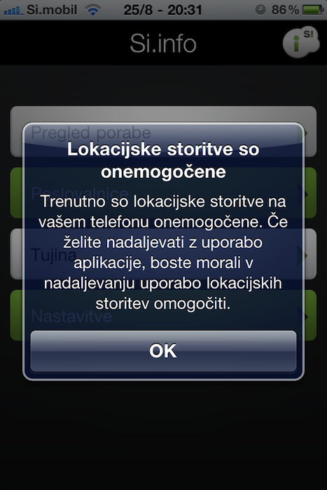 Aplikacija Si.info je zastonjska, vendar je za delovanje na iNapravah zahteva nameščen iOS 4.2.