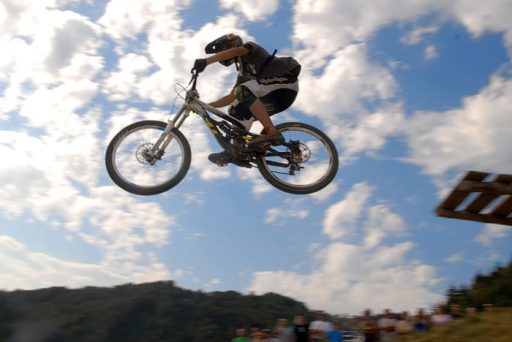Ko sem prišel v Blagovico in šel za označbami v hrib, sem bil presenečen nad številom ljudi, ki so bili pri dveh atraktivnih skokih – enem čez cesto, kjer so fantje in dekleta leteli več metrov v višini treh ali štirih metrov. Na dirki se je zbralo okoli 35 tekmovalcev, nekaj je bilo seveda tudi poškodb, vendar nič resnega (če se ne šteje za resno zlom roke in noge!).
