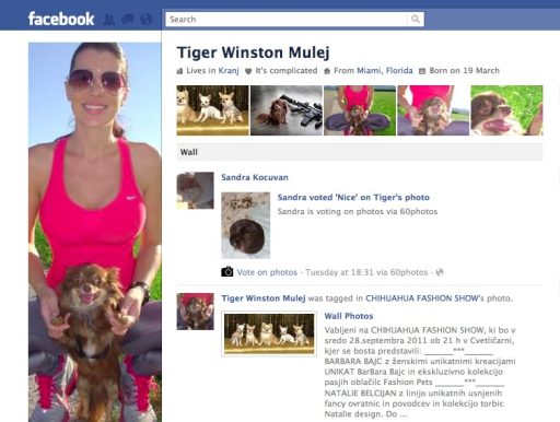 Verjetno se sprašujete kdo je Tiger Winston Mulej? Tudi jaz sem se včeraj, ko sem odkril Facebook profil te “osebe”. Tiger ima zapisano o svoji družini da je Iris Mulej – Mother in Črt Slavec – Father! Jeap, Tiger Winston je dolgodlaka čivava, katera ima na Facebooku 478 prijateljev, med katerimi je tudi profil Slovenske Novice!!!
