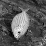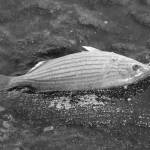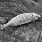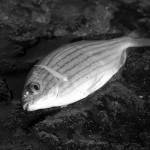 Fantič, verjetno star okoli 6 let na roke (s trnkom na laksu) lovi ribice na obali. Seveda mu par ur nobena ribica ne pokaže niti najmanjšega interesa, da bi se ujela na njegovo vabo. Vendar ima fantič srečo in potegne ven precej “luštkano” ribico, ki ji odstrani trnek iz ust in jo pusti ležati na suhem. Ker sem bil blizu njega s fotoaparatom in sem ravno fotkal sonce, sem ga vprašal če ga moti, če pofotkam njegovo ribo. Seveda je bil vesel in je dovolil.
