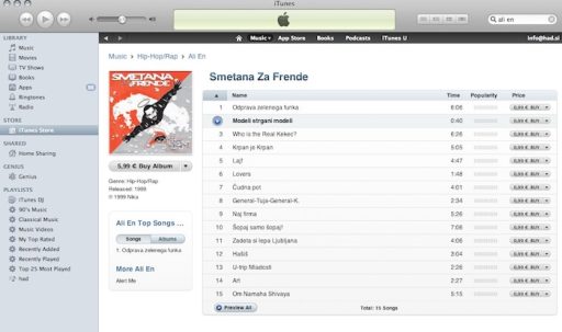 Oz. konkreten primer. Ali-En je pred mnogo leti izdal album Smetana za frende, ki ga lahko kupimo v iTunes Storeu za 5,99 EUR, če pa želimo samo komad Who is the Real Kekec?, pa ga lahko dobimo za 0,99 EUR-a.