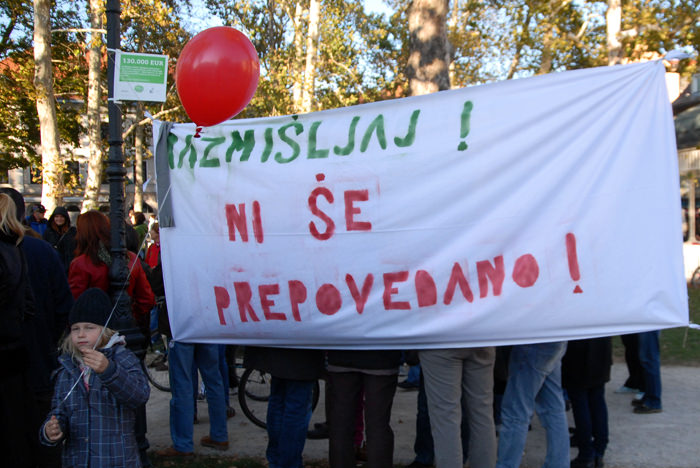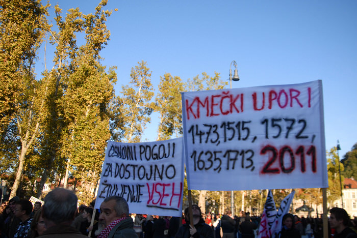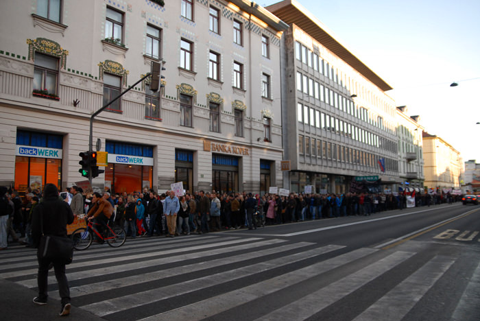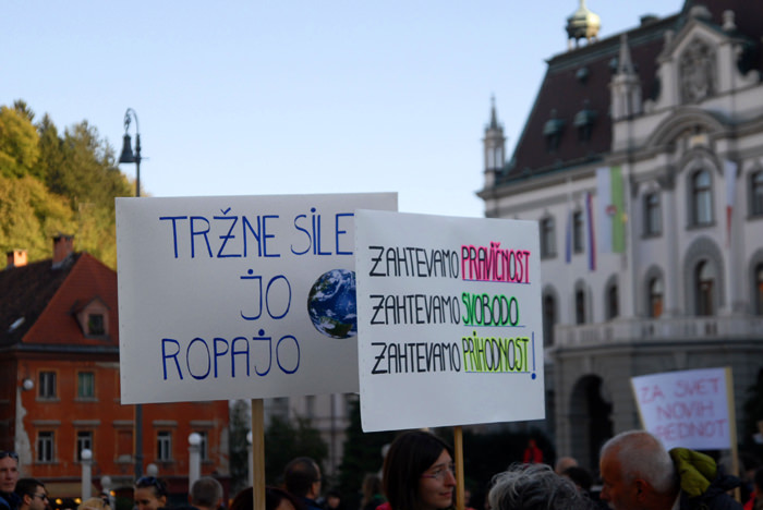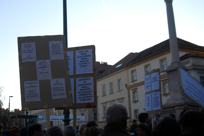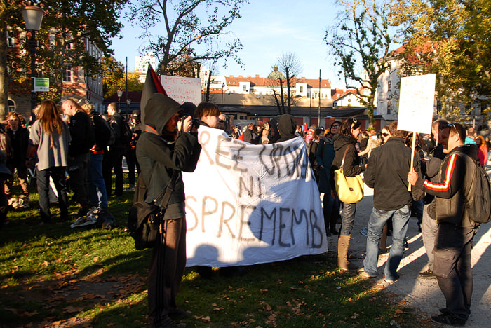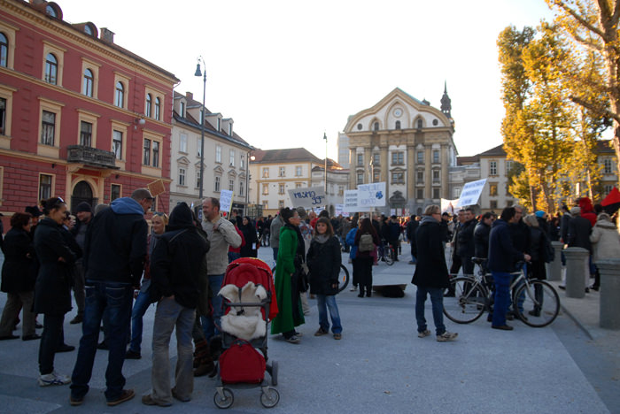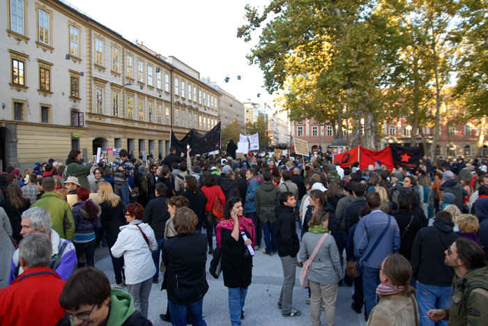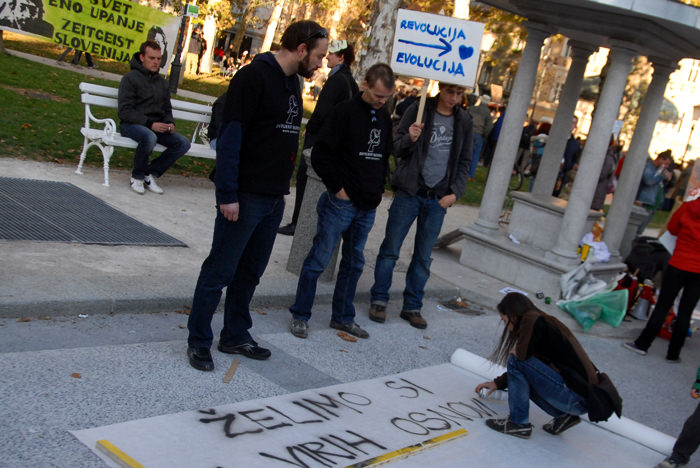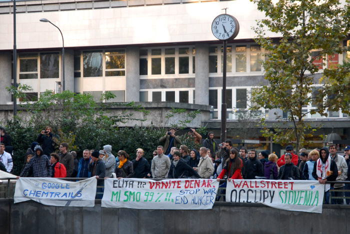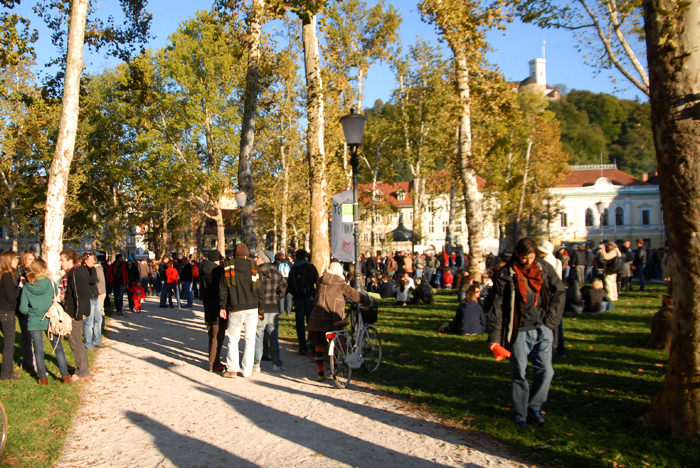 Kongresni trg v Ljubljani je bil poln. Preko 2500 (po mojih ocenah še več) udeležencev, ki so se po vzoru Occupy Wall Street zbrali in okupirali Ljubljano – Occupy Ljubljana. Zbor je potekal mirno, predvsem pa je bilo zanimivo gledati transparente, ki so jih nosili, prav tako pa je bil park poln petja, glasbe, bobnanja, pisanja po tleh, grafitiranja po papirju..
